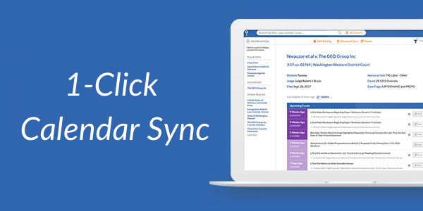 - Calendar deadlines quickly, by simply selecting a docket entry, and synching it with all attorneys on the case.