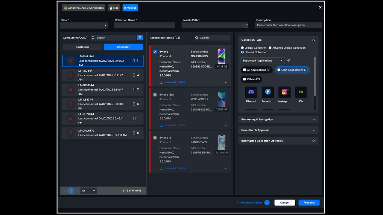 A key feature highlighted by the company is the ability to preview and selectively collect data from specific applications rather than requiring full device collection. This targeted collection capability could help reduce both storage costs and review time by allowing legal teams to focus on relevant data sources.