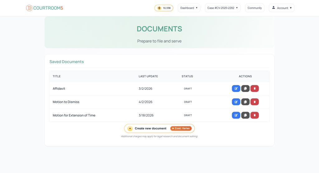 Documents provides a structured workflow for generating filings. This is not just a simple document generator.
