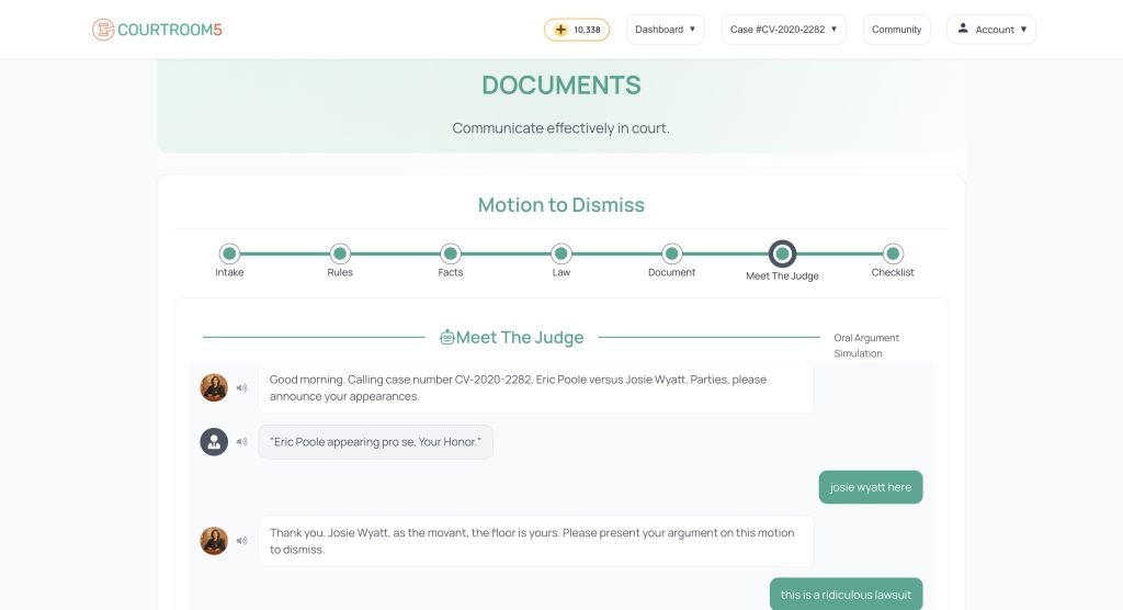Notably, the platform also includes an oral argument simulator where the user can practice arguing the motion before a simulated judge.
